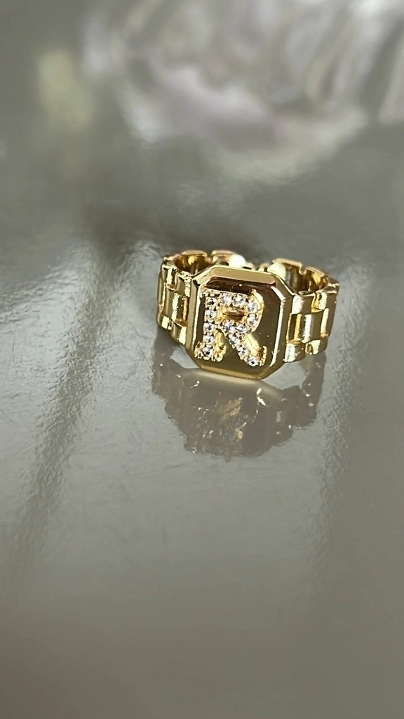 Anel Letra R com Zircônia