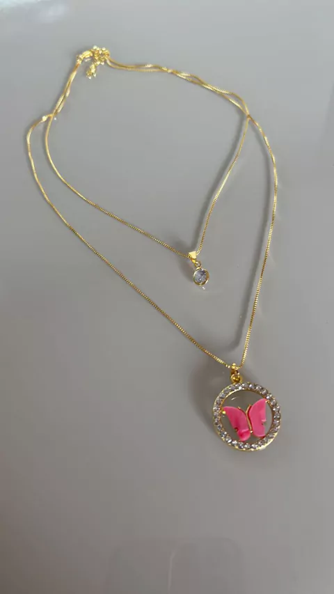 Conj de Colares Duplo Borboleta Rosa com Stras